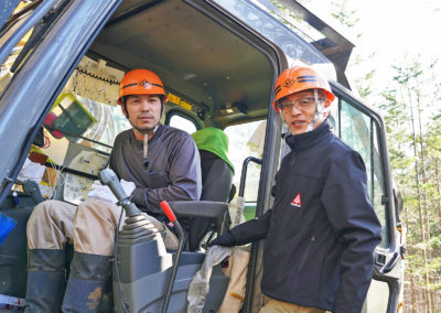 山の奥深くに入り、大きな重機を使って木を伐採したり、木の苗を植林して森を育てたり、多岐にわたってます。
